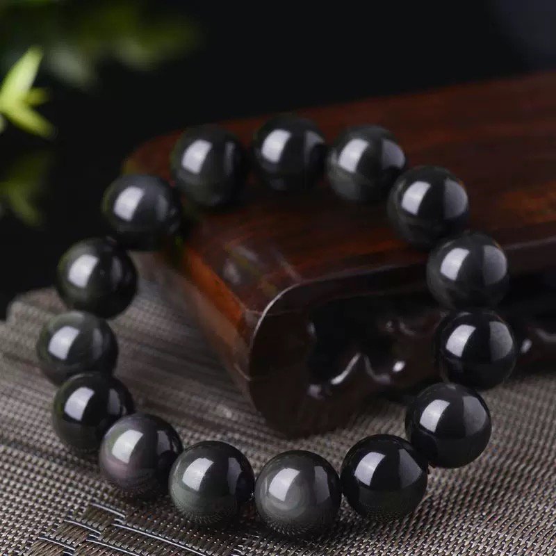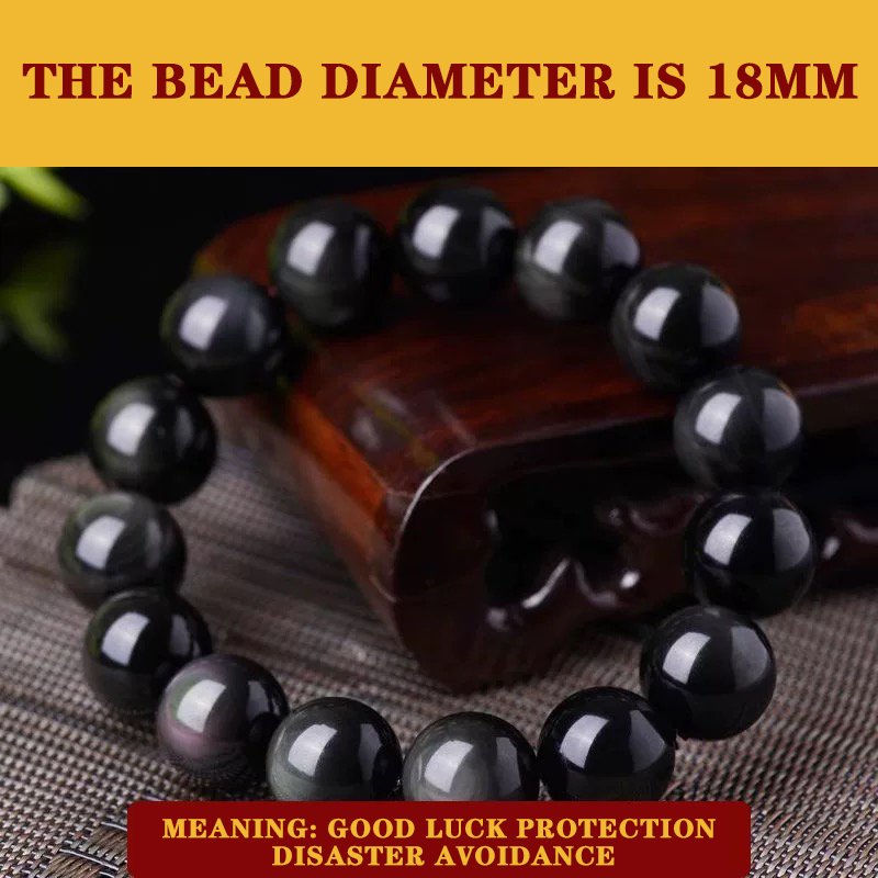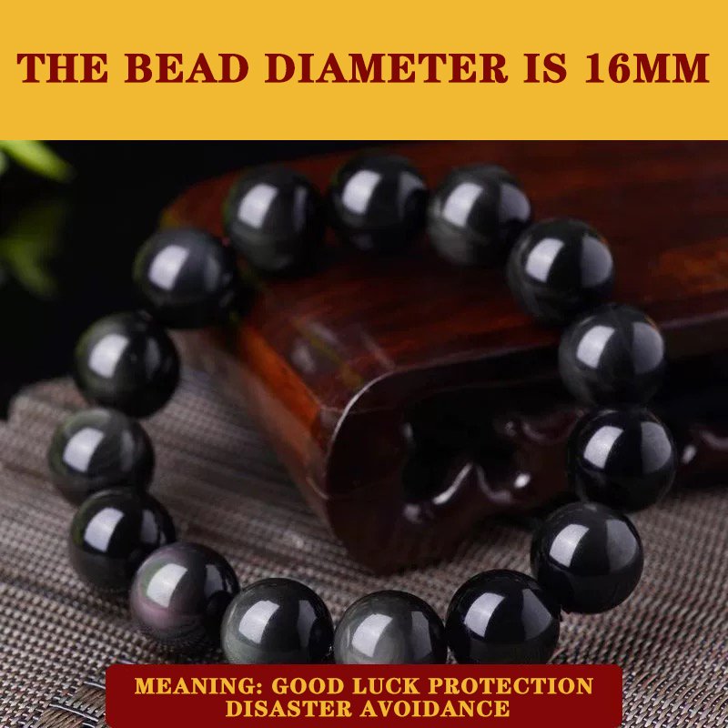 極上の双彩満月眼黒曜石ブレスレット、風水で運を開く逸品!独特な幻彩で、気場を整え、厄を払い福を集め、全身の運勢を守ります
