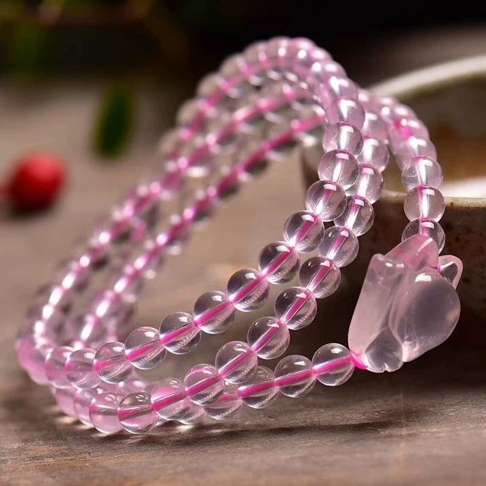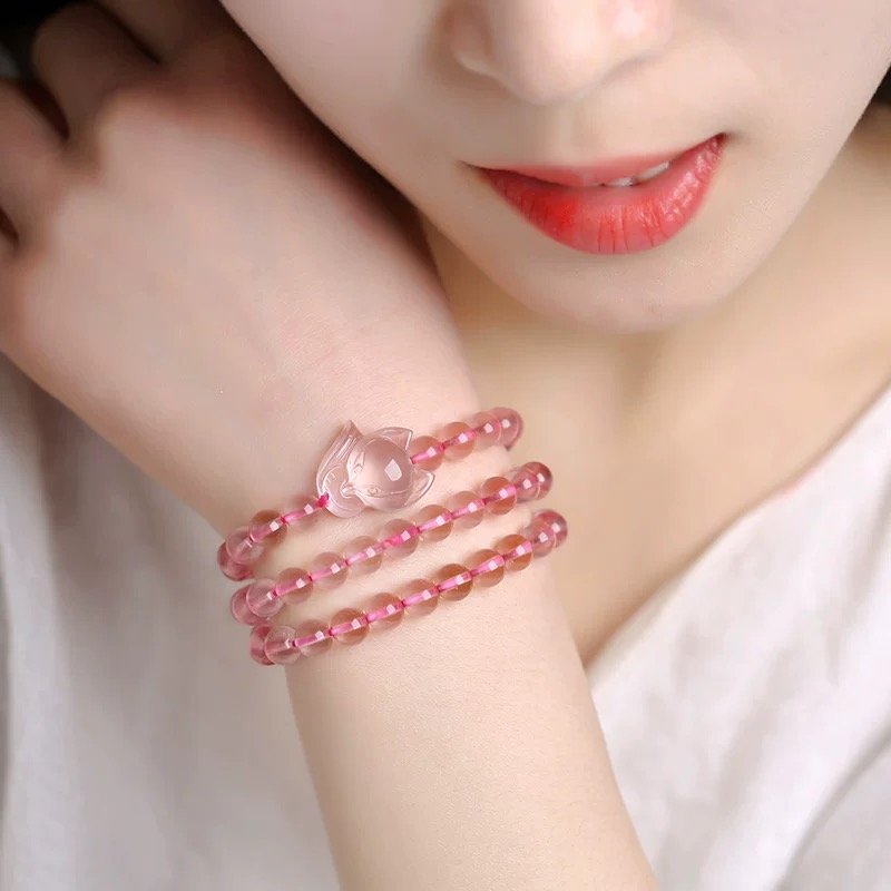 この天然ローズクォーツの小狐の 3 周ブレスレットは、ビーズが 1 つ 1 つ潤って透明で、小狐のデザインが精巧で生き生きとしています。伝説によると、ローズクォーツは愛の神が垂らした心血が変化したもので、愛のエネルギーに満ちており、素敵な縁を呼び込むことができます 。狐は古くから霊性のある動物と見なされ、福と幸運をもたらすことができます。このブレスレットを身につけると、気場を整え、貴人を引き寄せ、恋愛が順調に進み、人間関係が和やかになり、生活が幸福に満ちるようにします