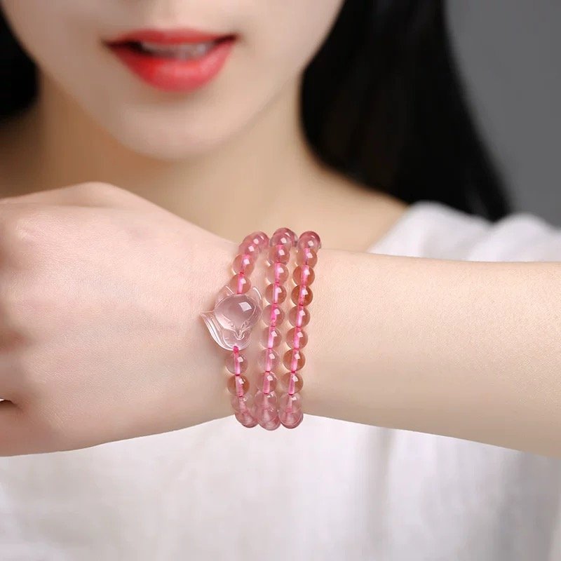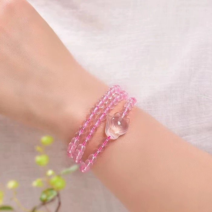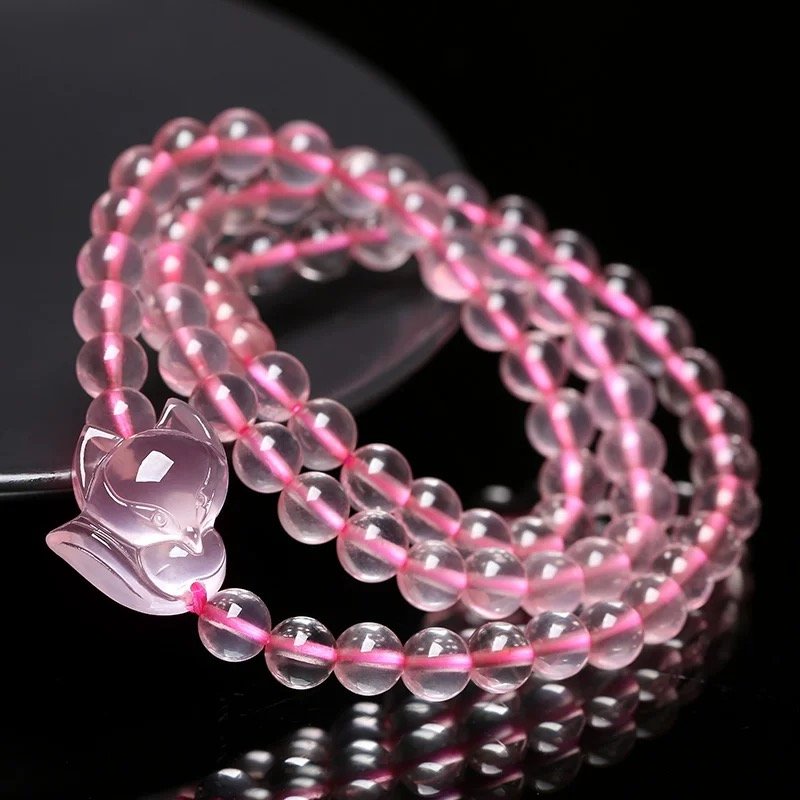 天然ローズクォーツの小狐の 3 周ブレスレット、風水で運を呼び込む可愛いアイテム!ローズクォーツの霊力と狐仙の福沢を融合し、恋愛運を高め、人望を盛り、手首に福を加えます