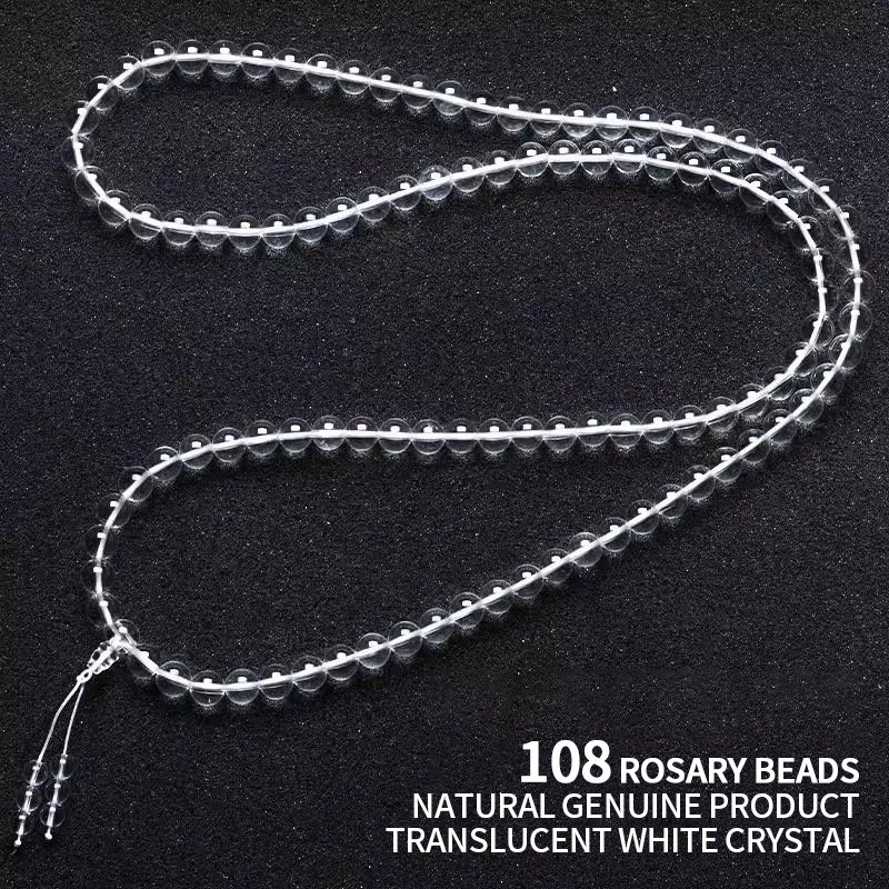 精選天然白水晶の 108 粒仏珠、手作り蓮の花付き、風水で福を祈る聖物!水晶の霊力を凝縮し、あなたの心身の和やかさと福運の綿延を守ります